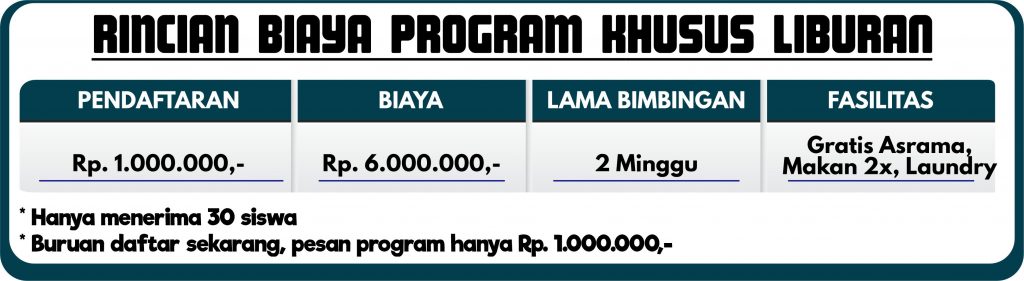 **Program jaminan hanya menerima siswa 30, program excellent dan genius menerima siswa 50**
