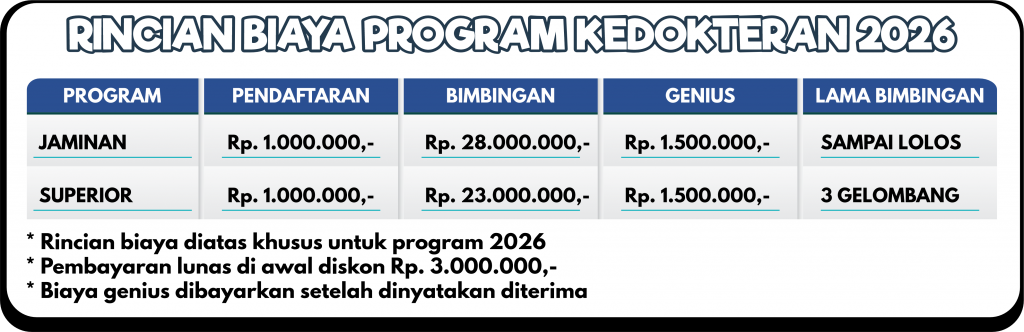 RINCIAN BIAYA BIMBINGAN MASUK KEDOKTERAN 2026