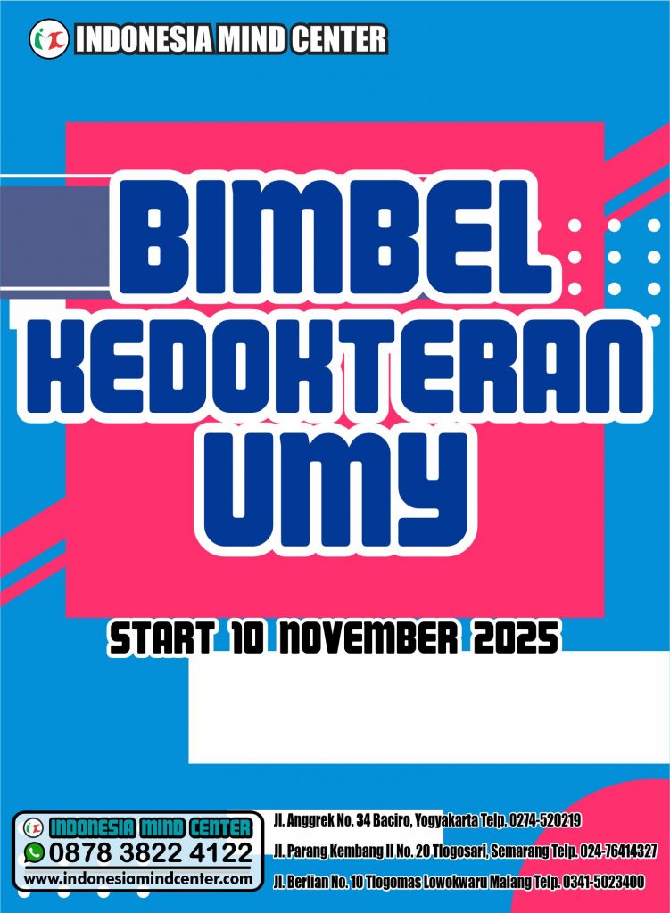 Tak perlu khawatir, bergabunglah bersama LPBB INDONESIA MIND CENTER, masternya masuk kedokteran umy,…yang telah terbukti 80-90% seluruh siswa di terima di kedokteran umy.