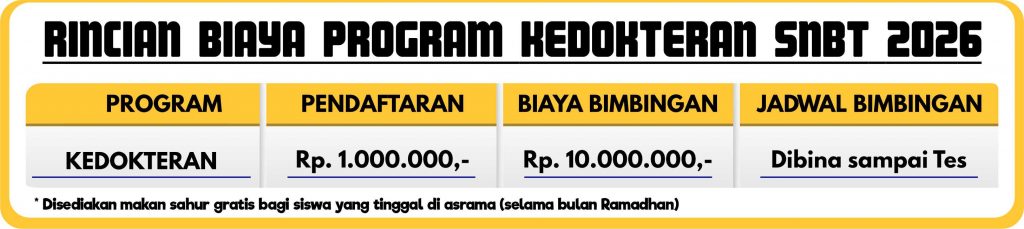 RINCIAN BIAYA BIMBINGAN MASUK KEDOKTERAN PTN/UTBK 2026